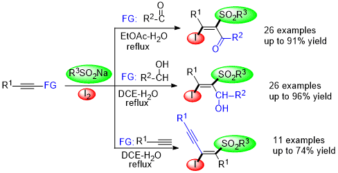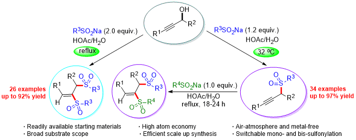 23) Temperature controlled di- and monosulfonylation of propargyl alcohols with sodium sulfinates: switchable access to (E)-allyl, vinyldisulfones and propargyl sulfones, Changqing Liu, Hang Li, Bo Wang, Ziyi Guo, Yu Wang, Jitan Zhang,* and Meihua Xie*, Org. Chem. Front. 2022, DOI: 10.1039/d1qo01906f.