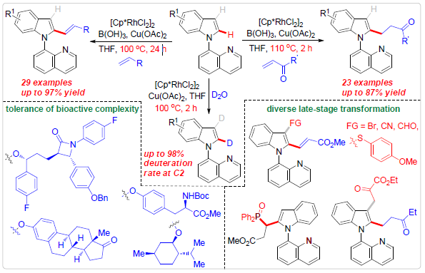 33) Rh(III)-catalyzed selective C2 C–H acyloxylation of indoles, Chaoying Fang, Li Li, Haitao Yang, Caiyang Kong, Jitan Zhang*, Meihua Xie* and Jiping Wu*, Chem. Commun. 2024, DOI: 10.1039/D3CC05799B.
