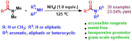 13) NH4I-promoted N-acylation of amines via the transamidation of DMF and DMA under metal-free conditions, Jiahui Chen, Jin Jia, Ziyi Guo, Jitan Zhang,* Meihua Xie*, Tetrahedron Lett. 2019, 60, 1426.