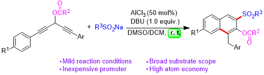 20) Construction of 3-Sulfonyl Naphthalenes via Tandem Reaction of 1,4-Diyn-3-yl Esters with Sodium Sulfinates, Ziyi Guo, Yiming Zhao, Yu Wang, Meihua Xie* and Jitan Zhang*, J. Org. Chem. 2021, DOI: 10.1021/acs.joc.1c00038.